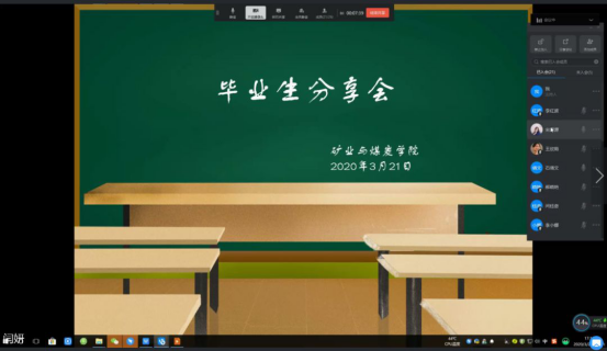 2020年3月21日,pg娱乐电子游戏官网入口借助“钉钉”举办线上大学生心理健康辅导沙龙——毕业生分享会。此次分享会由辅导员闫妍主持,各年级学生代表参加此次座谈会。