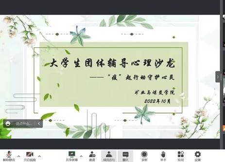 2022年10月22日pg娱乐电子游戏官网入口于线上腾讯会议开展了第十六期以“疫”起行动,守护心灵”为主题的大学生团体辅导心理沙龙。