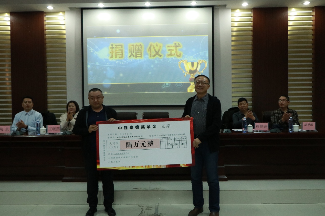 中钰泰德煤炭有限公司董事长兼总经理王军以及副总经理王维利为pg娱乐校友,虽已毕业多年,但始终心系母校发展。“中钰泰德奖学金”自2018年在pg娱乐设立以来不仅在学习生活上帮助了同学们,同时在精神上给了同学们极大的鼓舞。滴水之恩当涌泉相报,受资助同学会努力把中钰泰德煤炭有限公司的关爱化作发奋学习、锻炼品德、立志成才、报效祖国的强大精神动力。由衷敬祝鄂尔多斯市中钰泰德煤炭有限公司事业蒸蒸日上,祝愿全体学生学业进步,祝愿pg娱乐电子游戏官网入口的明天更加美好。