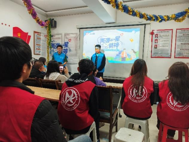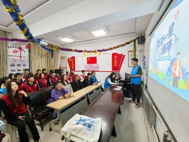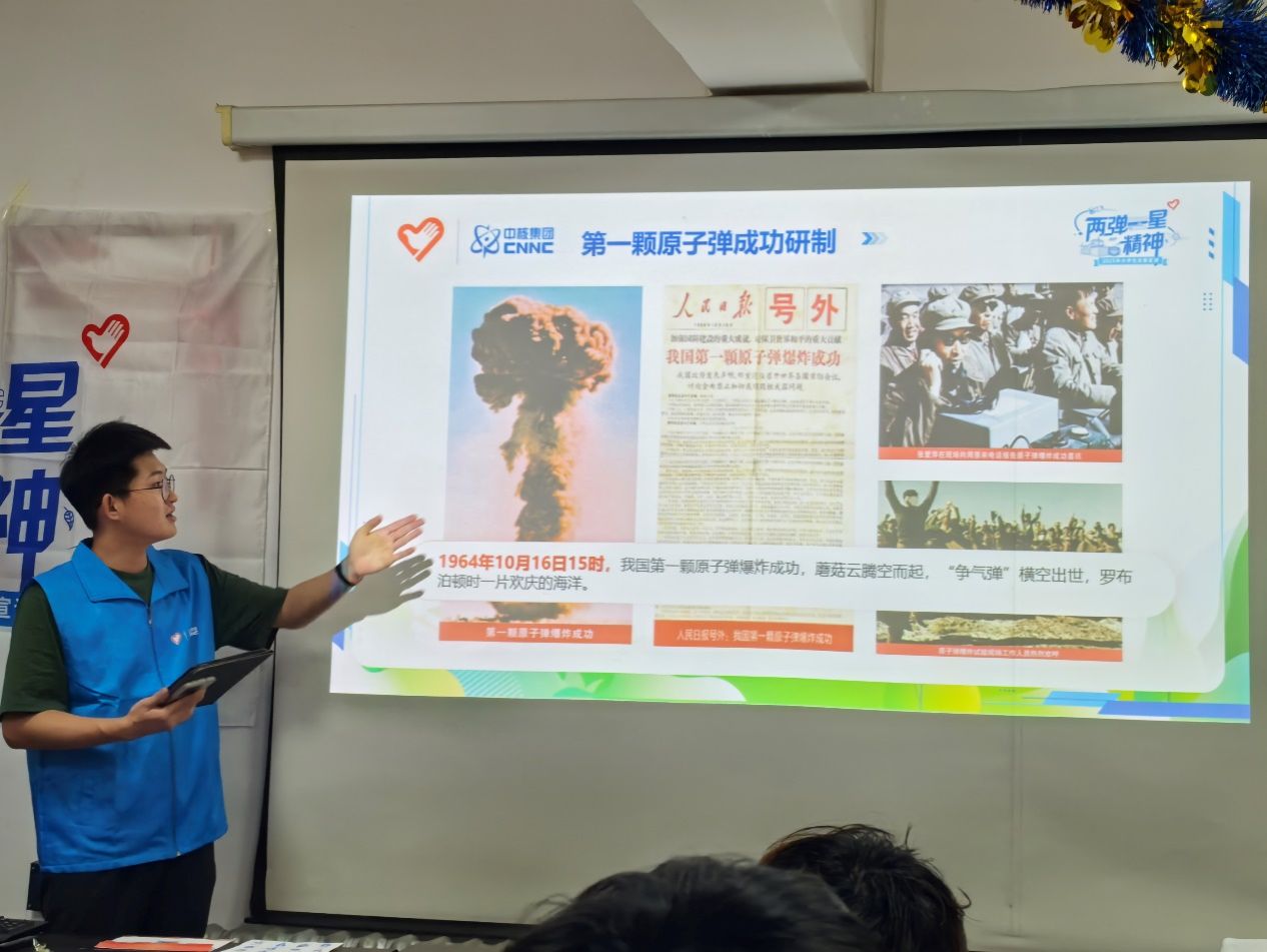 今天,“煤”好星辰志愿宣讲团来到包头市昆都仑区沼潭街道地科社区,面向核工业、地勘家属和pg娱乐电子游戏官网入口学子开展主题为“铭记‘两弹一星‘功勋——王淦昌、郭永怀的英雄史诗”的志愿宣讲活动。