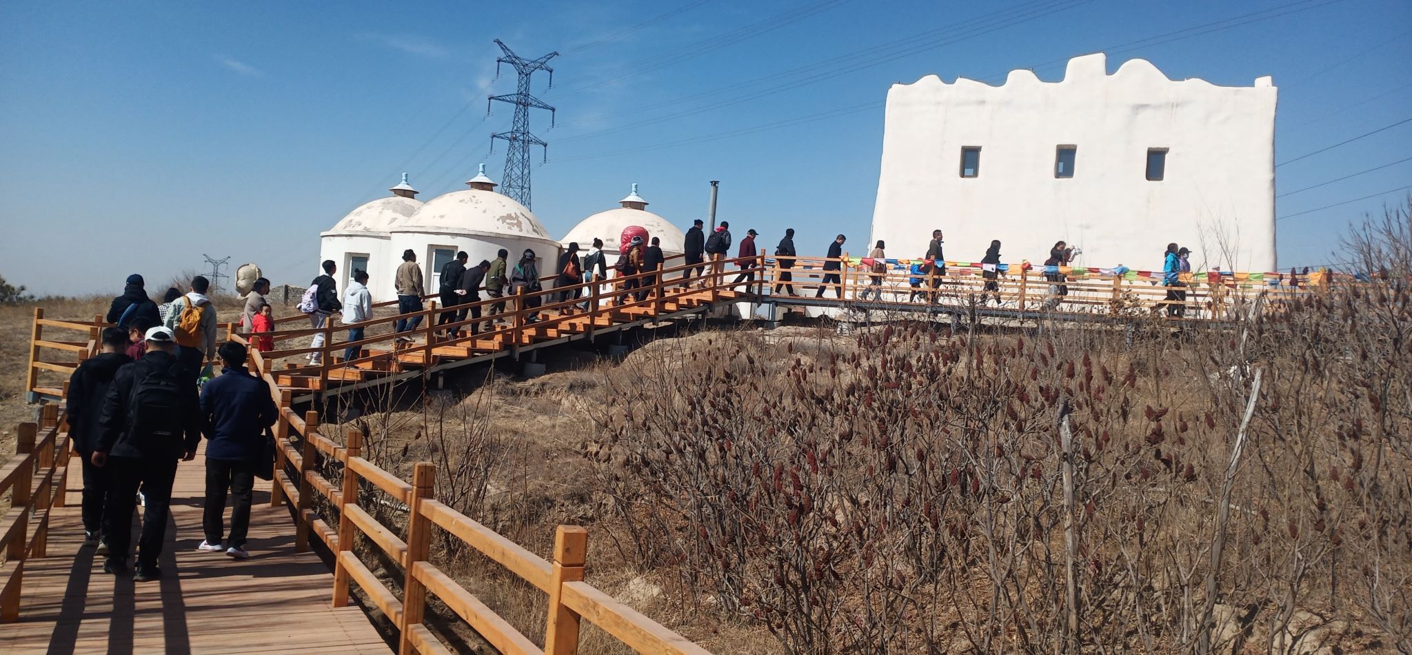 经过半个小时的车程,我们来到了位于内蒙古自治区包头市青山区兴胜镇东达沟村——国家级“全国文明村”“全国乡村治理示范村”。在东达山艺术区,大家参观了糖画、烫金葫芦、剪纸、木雕等众多非遗技艺工作室、当代美术馆和民间美术馆。还在大青山国家自然保护区栈道踏青赏春,感受春天气息的同时领悟了中国优秀传统文化独特的艺术魅力。